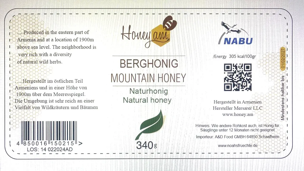 Ներմուծող՝ A&D Food GmbH, Օդենվալդստր.9