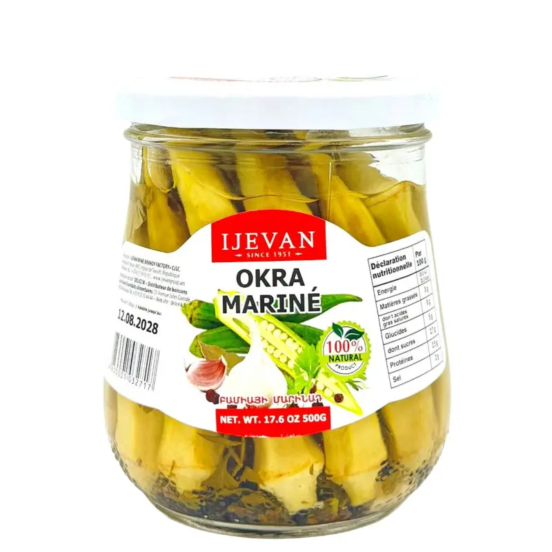 Wasser, Okra, Knoblauch, Dill, Petersilie, Lorbeerblatt, Salz, Scharfe Peperoni, Pfeffer (schwarz), Essigsäure, Zitronensäure
