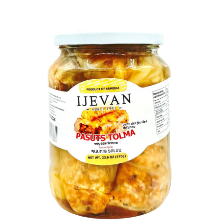 Kohlblätter, Rote Bohnen, Kichererbsen, Linsen, Emmer, Bulgur, Gelbe Erbsen, Sauerkraut, Zwiebeln, Petersilie, Tomatenmark, Sonnenblumenöl, Gewürze, Wasser, Salz,