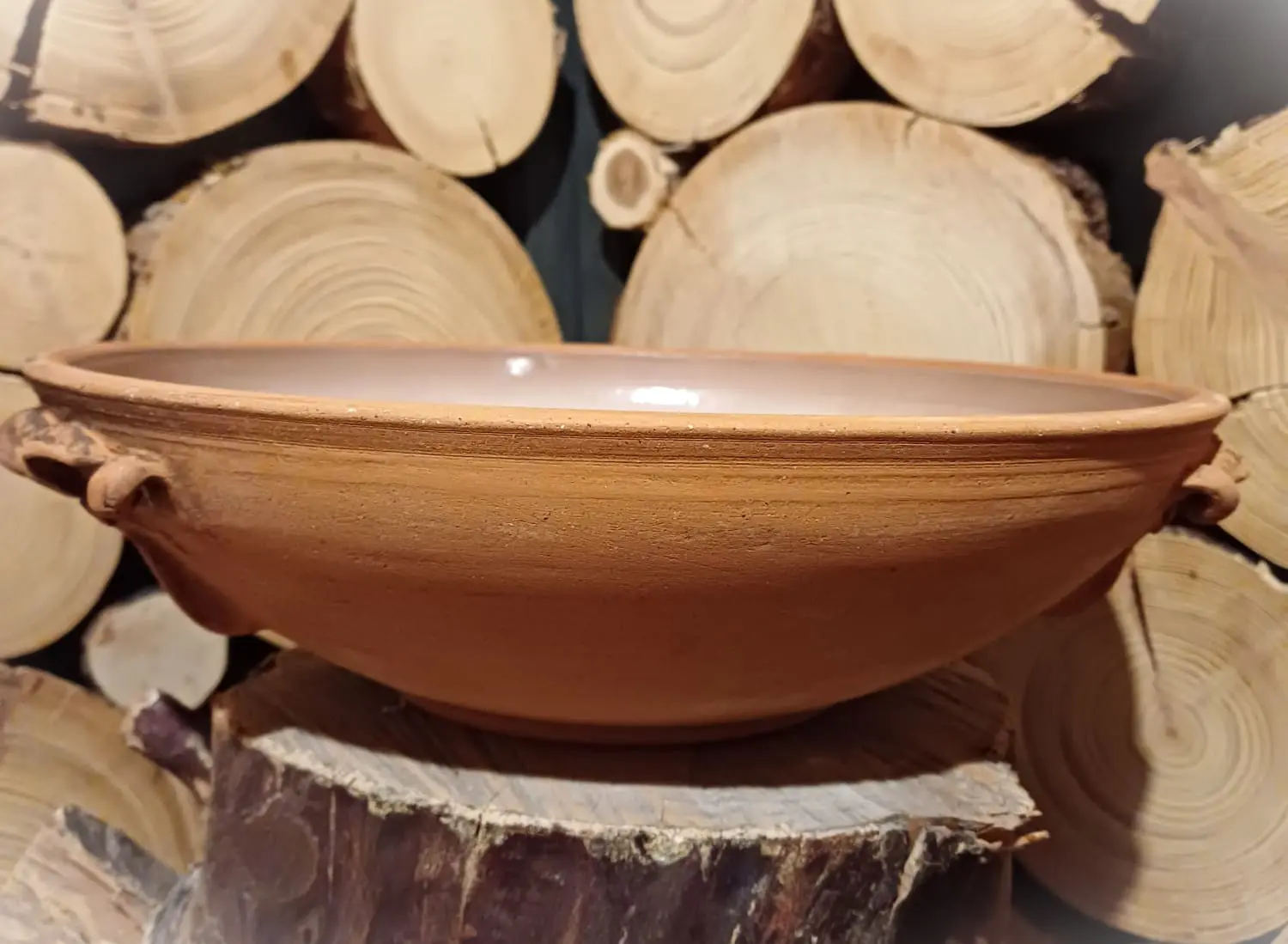 Große Obstschale rund aus Ton handgefertigt 1St.